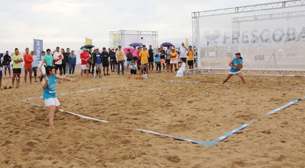 フレスコボールはビーチのスポーツという印象が強いが、実際は公園や体育館でも楽しめる。