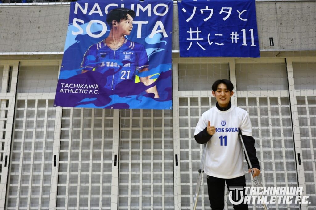 これまで積み重ねてきたキャリアが一度止まる。立川アスレティックFCが優勝を目指して戦う今シーズン、南雲の姿はベンチにはない。だが、彼は諦めなかった。リハビリに励みながら、試合中はスタンドからチームを見守り、ハーフタイムや試合後には選手たちにピッチレベルでは得られない視点でアドバイスを送る。