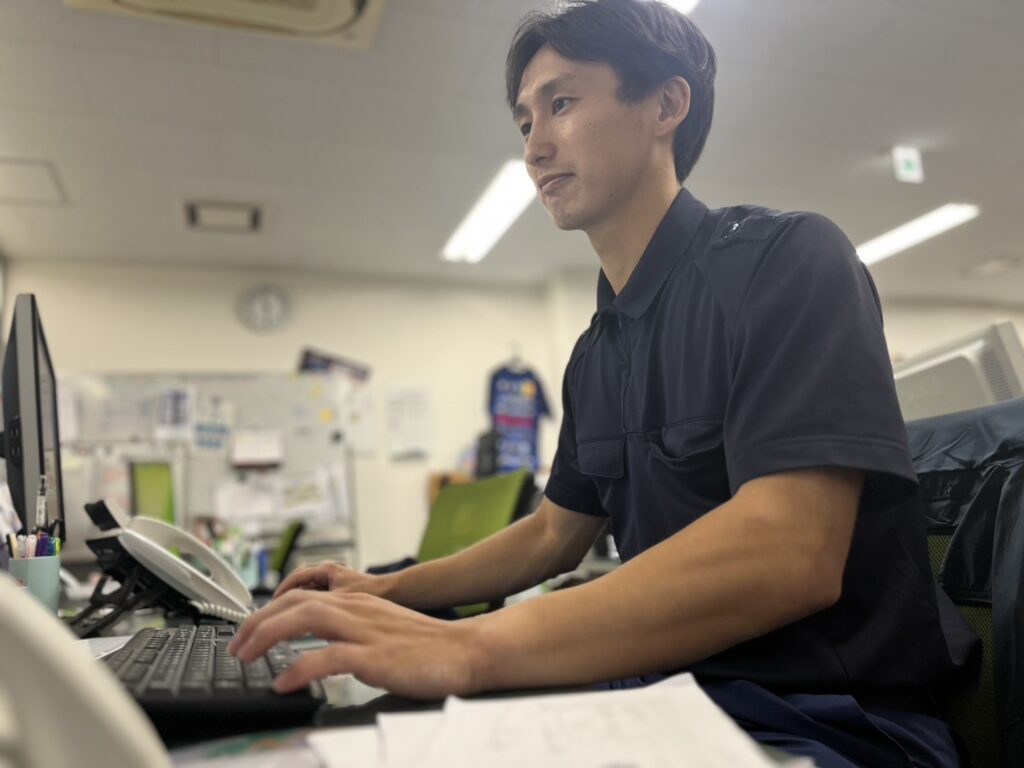 立川に移籍後は、立川市に本社を置き、トップチームのパートナー企業である日本綜合警備株式会社に所属し、働きながら競技を続けるという新たな挑戦が始まった。警備員のシフト管理、取引先とのやり取りなど、業務は多岐にわたる。早朝にチーム練習があり、それが終わった朝10時から夕方18時半まで働く。